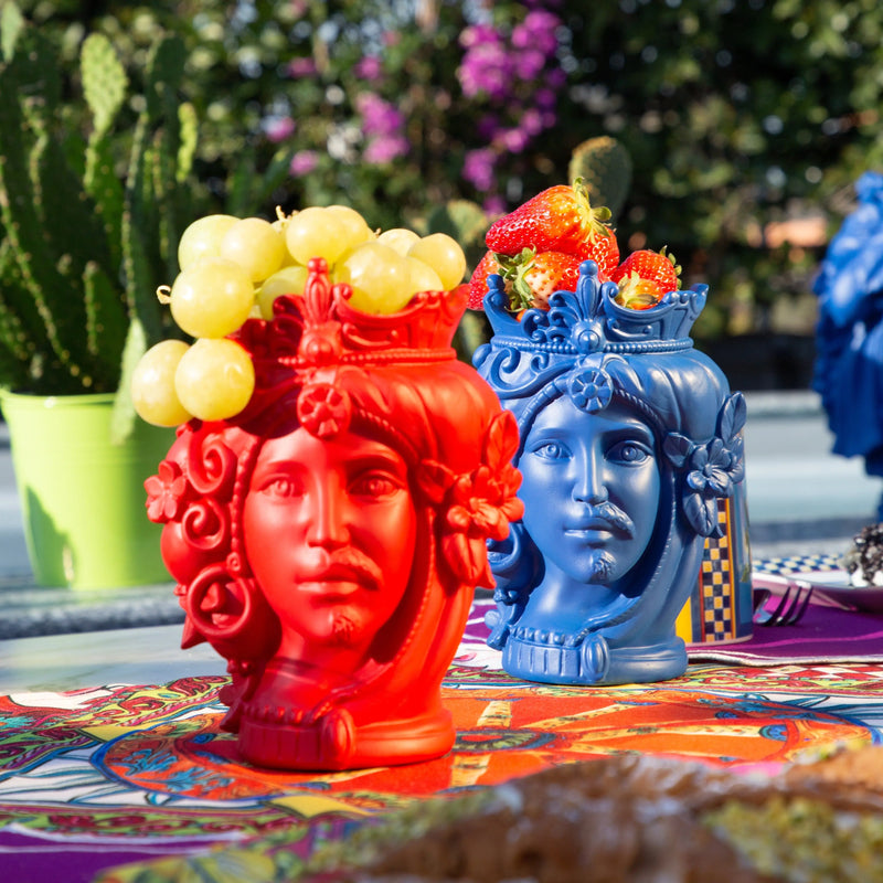 An aspiring and bewitching collection. Embellished with flowers, citrus fruits, and jewels, the Teste Matte (Crazy Heads) represents an undisputed symbol of legend and passion. The boldness in the dualism of colors makes their reinterpretation an extreme example of contemporaneity.